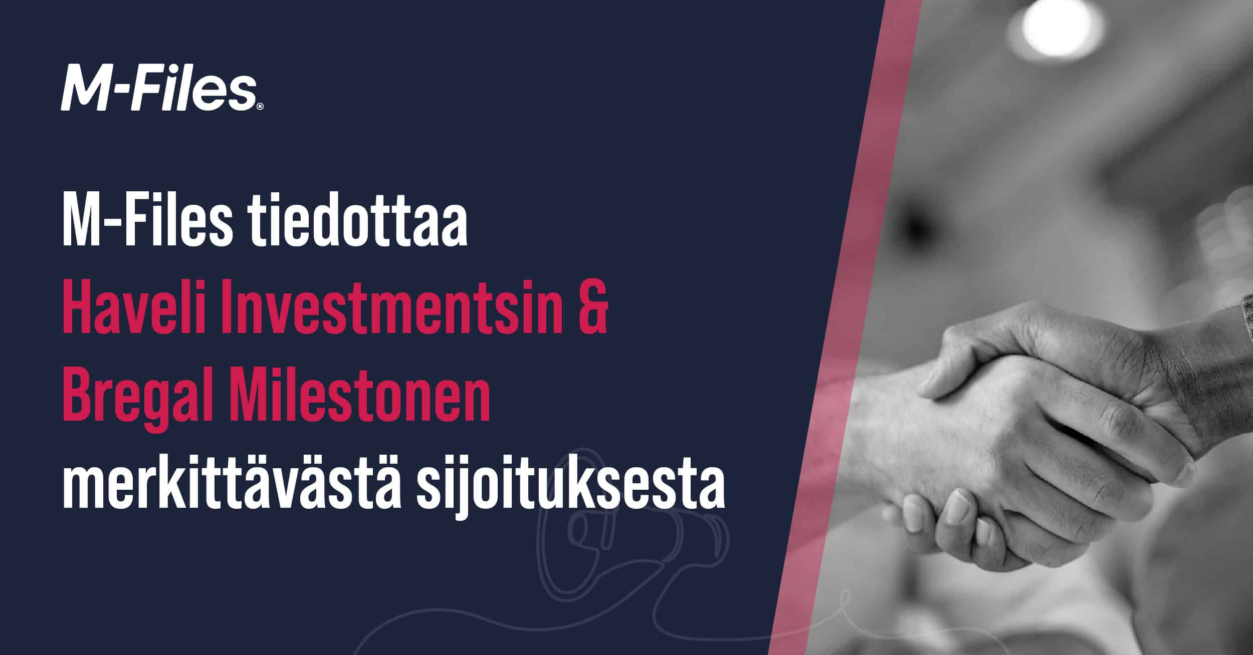 Kokeile M-Filesia ilmaiseksi 30 päivän ajan! Tutustu M-Files Ainon GenAI-ominaisuuksiin, tehosta yhteistyötä kollegoiden kanssa, automatisoi työnkulkuja ja avaa ovet loputtomiin mahdollisuuksiin.
