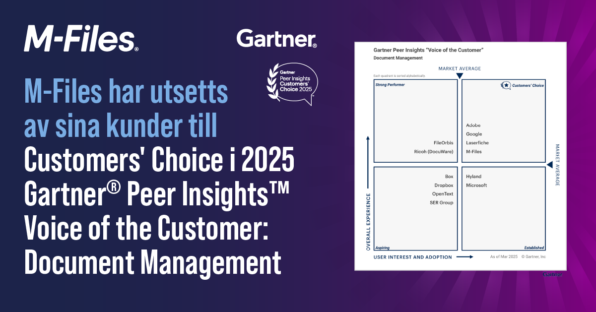 Gartner®: M-Files utnämns till Customers' Choice för dokumenthantering